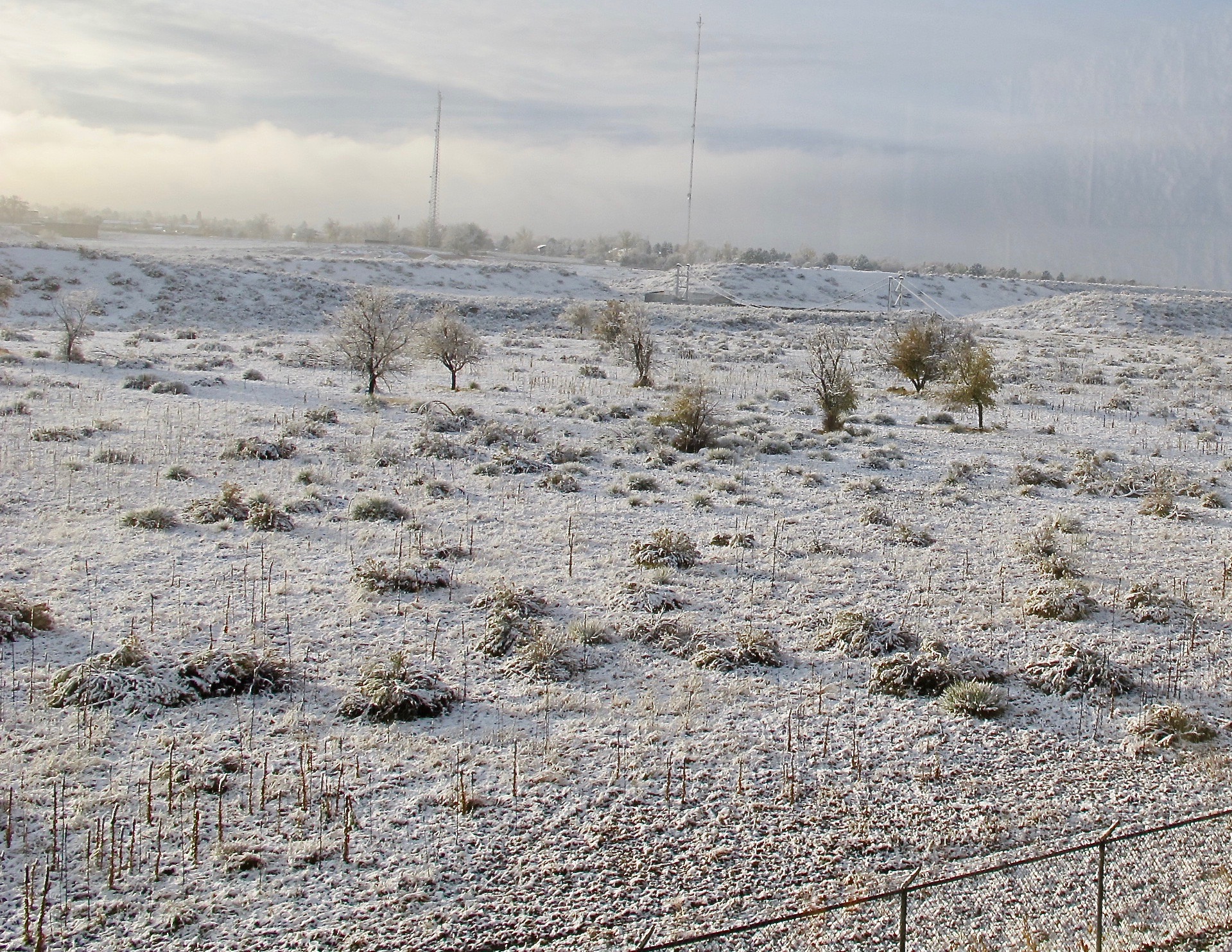It snowed a bit in Aurora that night and was our view the next morning. The snow was a light dusting and had partially disappeared by the time we began the day.