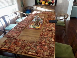 Our house gift to Dot was a set of Thanksgiving placemats…enough (we hope) to have a place for each member of her visiting family for the holiday. Thanks to you, Dot, for all your preparation and work to get ready for us. You are the hostess with the mostess!