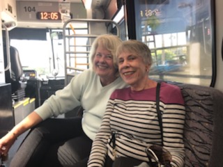 The Orange High Panther crew met at Dot’s house for a second time. Some of us flew and others drove to Murrieta. This is Diana and Trish on the airport bus.
