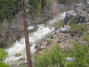 It was snowing to beat the band up there…the last barrier to get to the big waterfall. It was quite a rocky path to get there and I opted out quickly. So did the guys. This raging creek is a tributary to the Carson River
