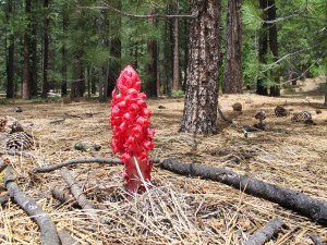 We saw 7 snow plants. It has no chlorophyll; it derives nutrition from fungi underneath the soil, and for this reason, the plant is called “mycotrophic”. These fungi are the mycorrhizae (“fungus-roots”) of conifers. They are edible but are protected.