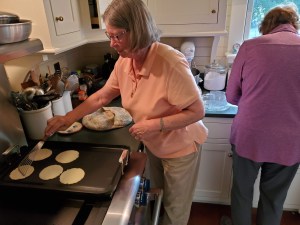 Susan volunteered to make gorditas for brunch the next morning. This is the assembly line to begin the prep work.