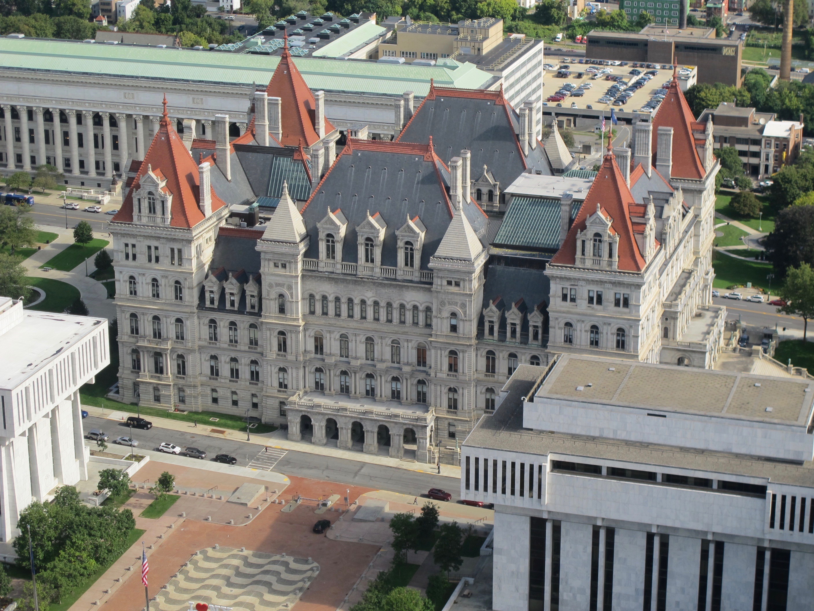 The NY capitol is huge! Construction began in 1871 and finally ended in 1899 when T. Roosevelt declared it finished. 5 different architects with different ideas caused it to have several different architectural styles.