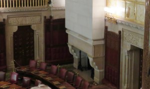Non-functional fireplaces in the Senate allow Senators to step into the good-sized recess for private conversations.