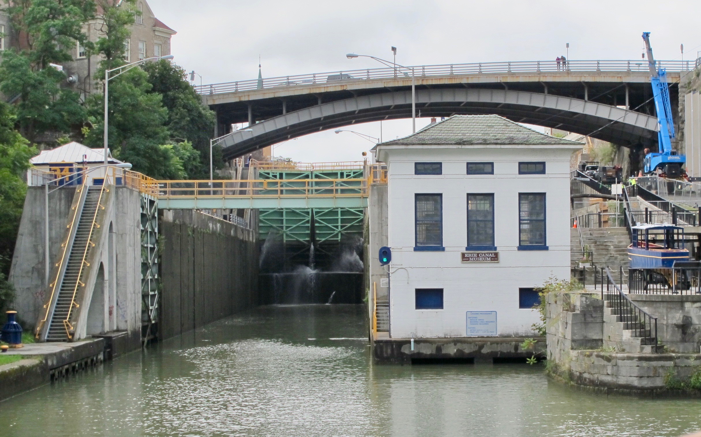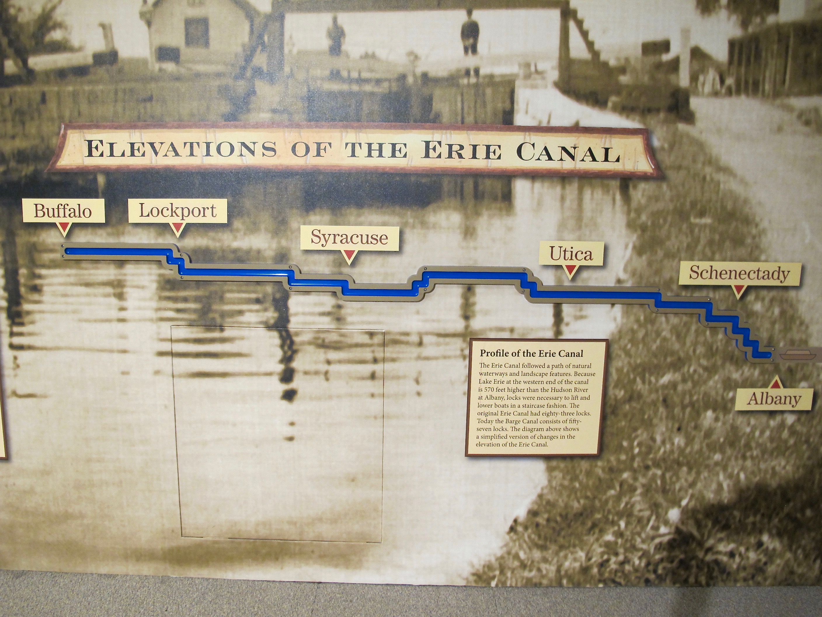 Lake Erie is 570’ higher than the Hudson River. Eighty-three locks were originally used to lift the boats up and down the canal. Today, with reconstruction, 57 are used.