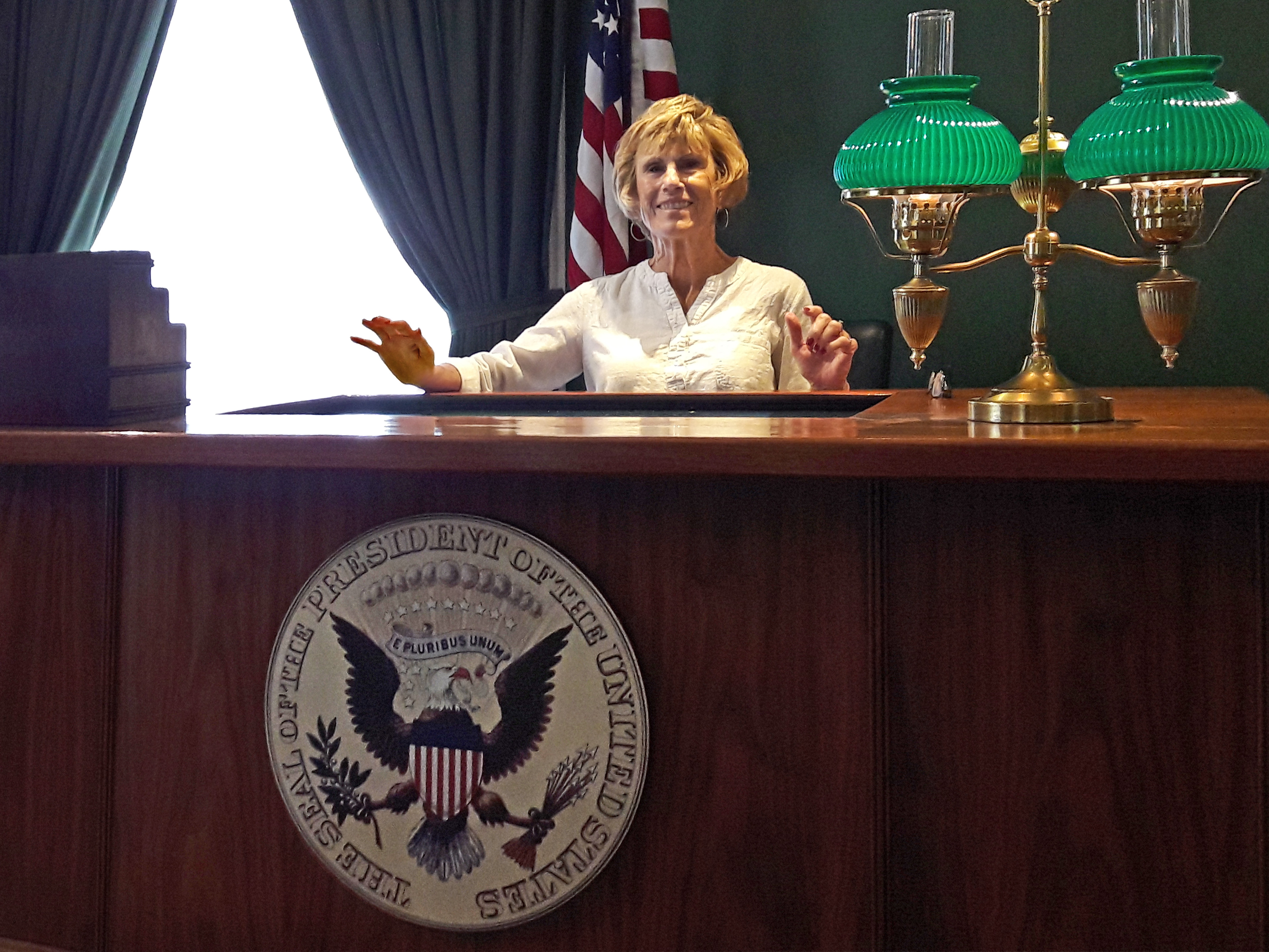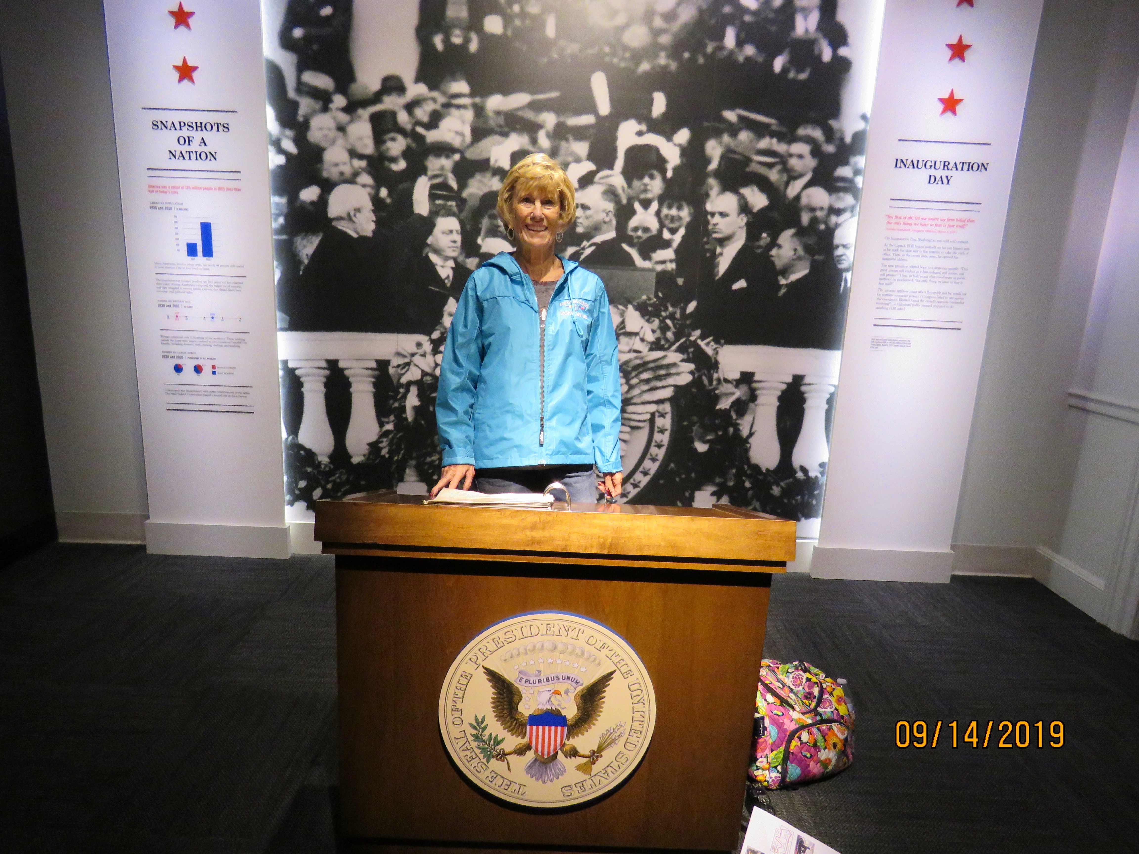 Our last tour of the day was at the Theodore Roosevelt Inaugural National Historic Site. He was inaugurated at the house of Ansley Wilcox, a friend of his after President McKinley was assassinated at the Pan-American Exposition. The tour was interactive and was fun. Jerri is at his Presidential desk.