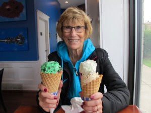 Our treat for walking those many steps and finishing the tour was to visit the Lake Effect Artisan Ice Cream store. We read about this place in Buffalo and determined that we had to samples its wares. It exceeded all our expectations. No, Jerri didn’t eat both of those cones.
