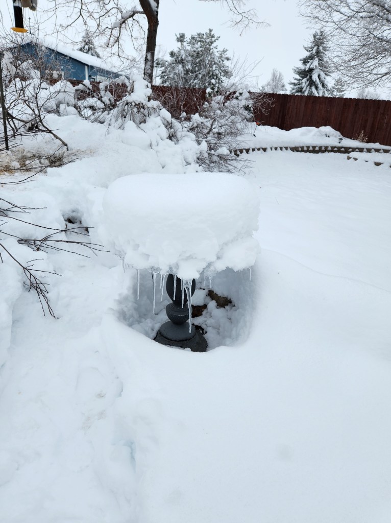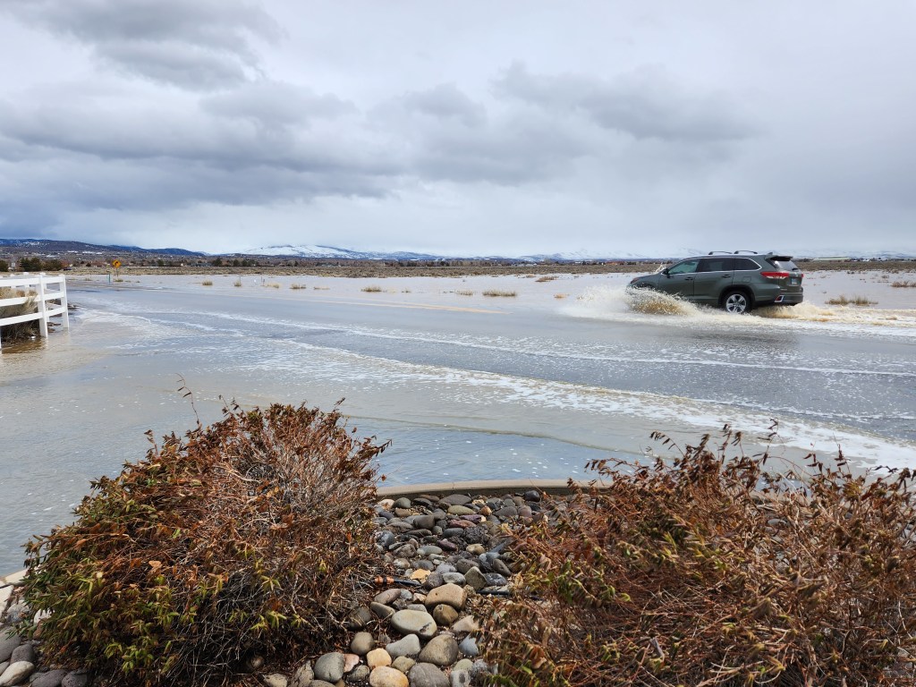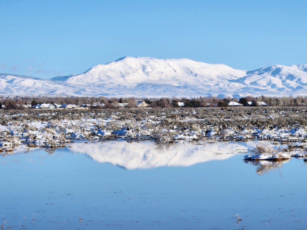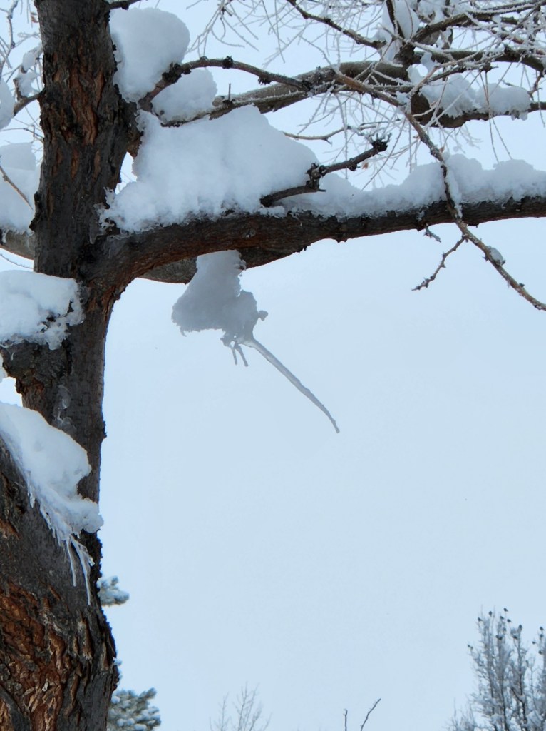 All this beauty and looking for fun things in the snow must come to an end sooner or later. We have a relatively warm rain today that is quickly melting the snow. Most of you know an “atmospheric river” hit the West Coast and California’s Central Valley very hard yesterday. It’s now in our area. We are also concerned for floods as this melted snow must find its way to the Carson River and other waterways in Western Nevada. So right now, at this minute, I’m hoping the forecasters are right in saying we will have snow on the valley floors tonight, thus saving some of the area from flooding.