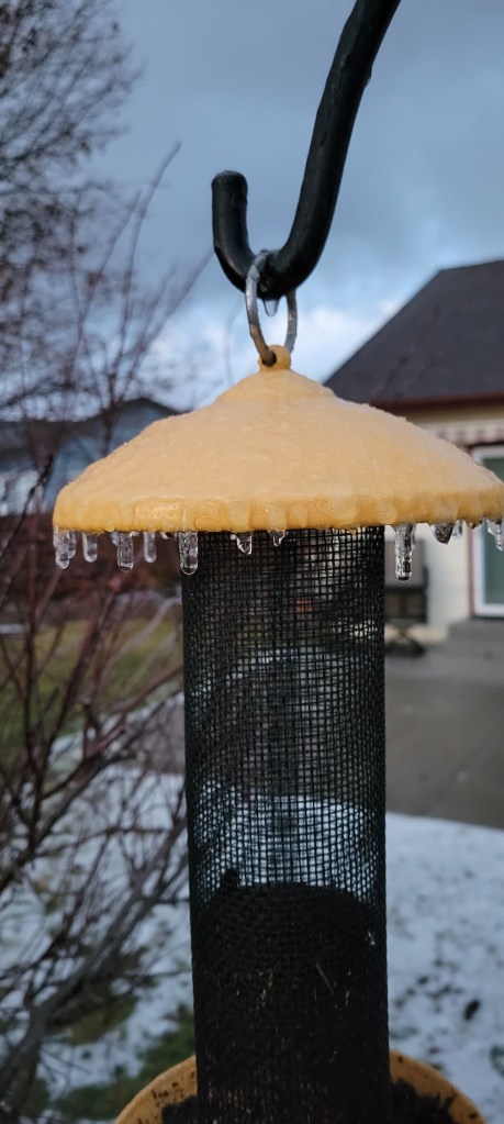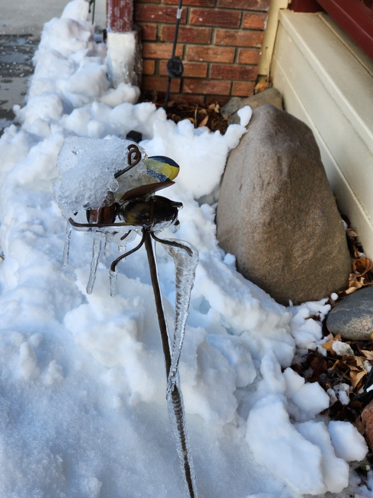 Yes, it’s been down to single digits, causing the birdbaths and water tins to freeze solid. It was warm enough yesterday to extract these disks. I like it when the leaves get frozen in the disks and add a bit of artistic value to the disks.